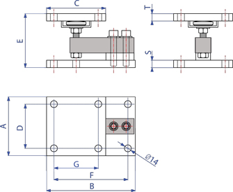 Mounting kit for SBX/SBK series shear beam cells from 3000 to 5000kg, suitable for weighing hoppers, tanks, platforms etc.